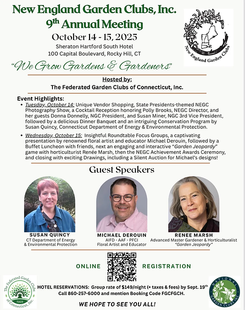 October 14-15, 2025 New England Garden Clubs (NEGC) Annual Meeting: Click Here for more information.​​​